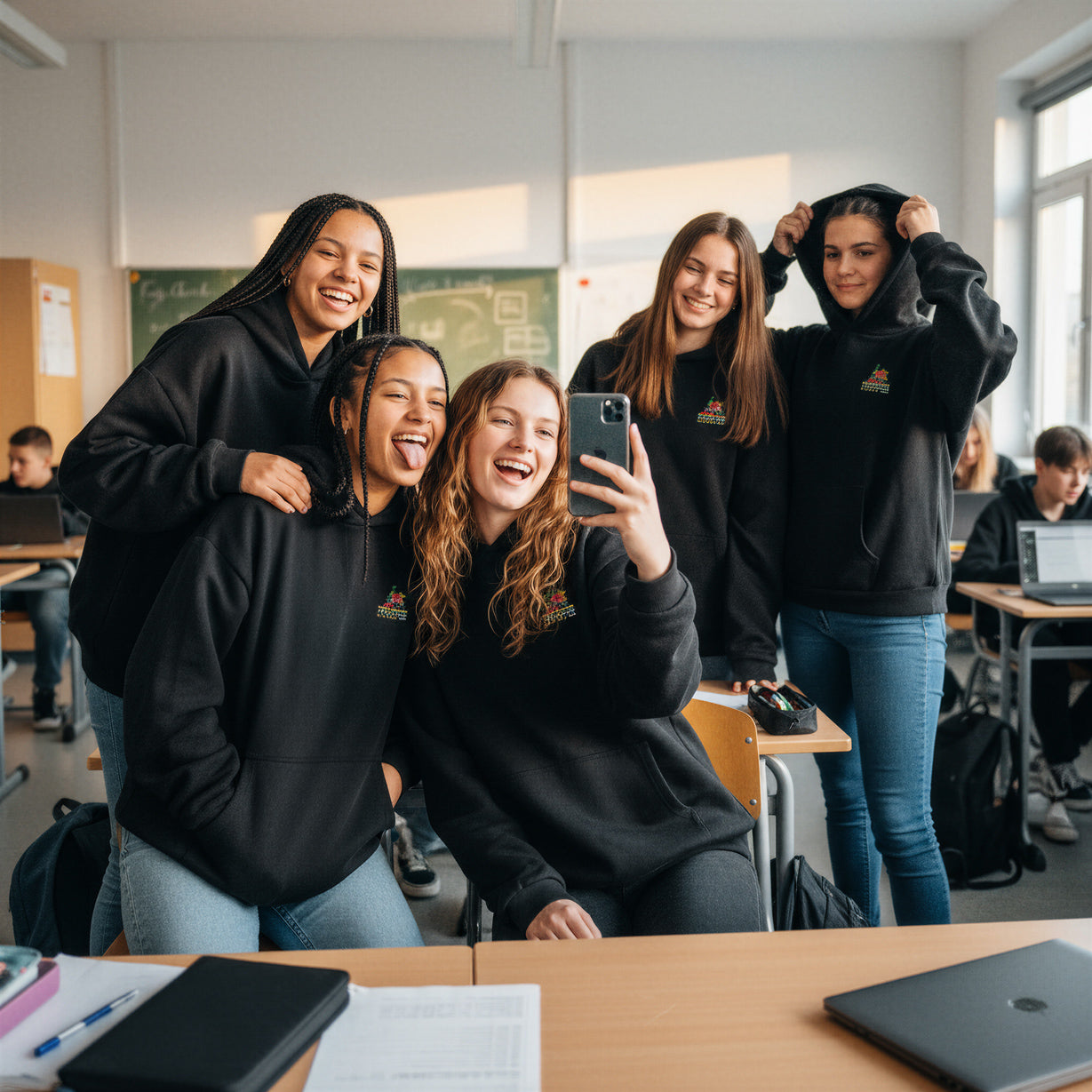 Wir nehmen uns Zeit für euch! Von der ersten Idee bis zum fertigen Design beraten wir individuell und helfen euch, den perfekten Abi- oder Abschluss-Hoodie zu kreieren.
